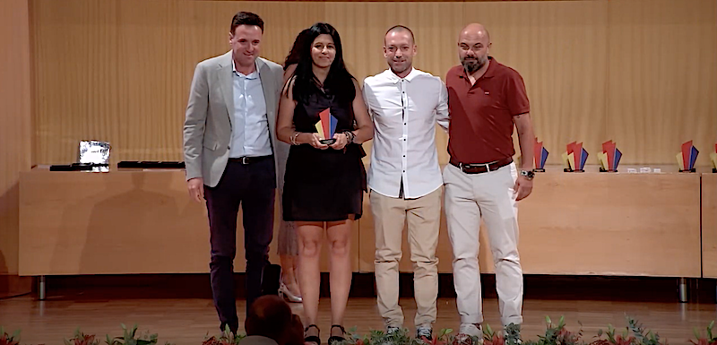 El colegio unionense ha recibido el premio como mejor centro en la promoción de este deporte en el territorio autonómico en la temporada que ha terminado. En la fotografía se observa el momento de recogerlo en la décimo segunda gala de la FAMU por parte de la directora, Isabel María Salinas, y los docentes Antonio Fernández y Nacho Rodríguez.