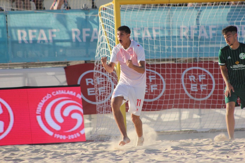 El jugador unionense ha formado parte de la selección de fútbol playa de la Región de Murcia que ha conseguido el subcampeonato en el Campeonato de España cadete disputado en la playa de la Victoria de Cádiz. En la foto se le observa tras la bandera autonómica