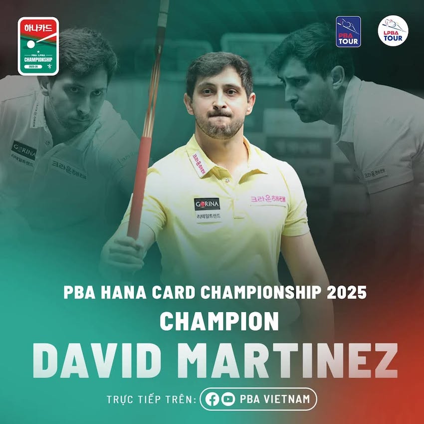 David Martínez Bosch derrotó a los coreano TH Kim1 (3-0), HD Lee (3-0) y JT Kim (3-2), además del español Palazón (3-0) y al coreano SD Lee (3-0), por ese orden, clasificándose para la semifinal, donde superó al turco Cenet (4-2) y sacó billete para la final del Tour PBA, donde tuvo como rival al coreano JH Cho, en un duelo de estilos muy distintos que enfrentaba a los dos billaristas que están al frente de la lista de jugadores del billar profesional de la PBA en la actualidad. El vecino de Roche ganó por 4-2. "Gracias a mis patrocinadores (Crown, Gorina y C Pro), por el apoyo, y también gracias a toda mi familia y amigos que me envían mensajes. Es hora de parar algunos días y remontada a partir del 22 de julio para la liga por equipos", ha indicado David Martínez en redes sociales tras su nuevo éxito.
