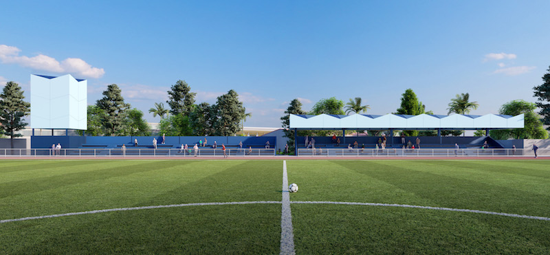 Comienzan los trabajos de mejora en el complejo municipal Antonio Sánchez para fomentar el turismo deportivo sostenible, siendo la inversión próxima a los quinientos cincuenta mil euros. En la foto adjunta se observa cómo quedarán las gradas del campo de fútbol Miguel Expósito