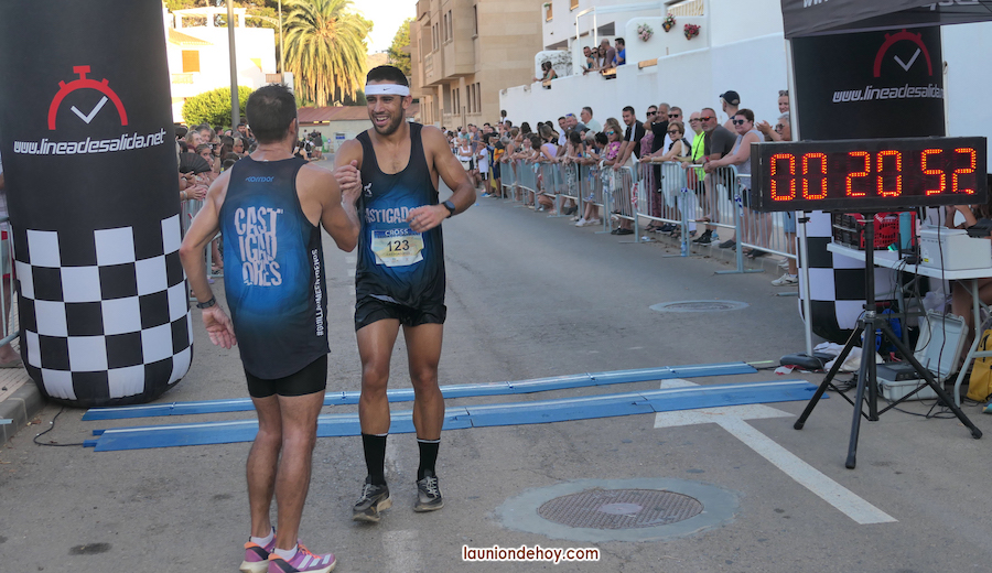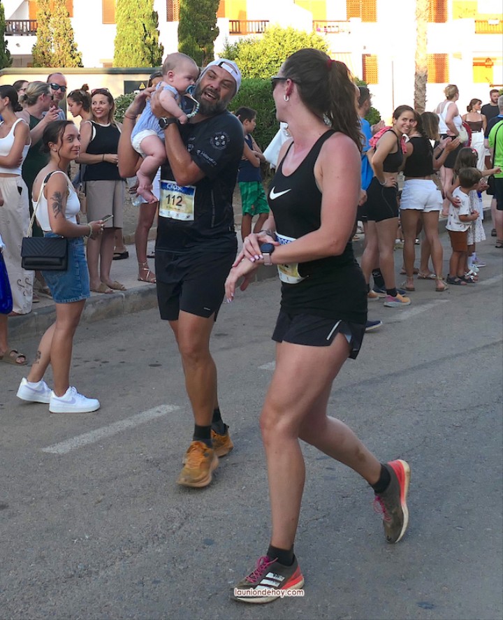El ganador pertenece al Club de Atletismo Nogalte, de Puerto Lumbreras, y el segundo clasificado es del CT Tragamillasa, pero resulta que ambos están en el grupo de amigos 'Castigadores', como lucían sus camisetas mientras daban las zancadas. Ambos ya iban escapados del grupo al kilómetro de carrera, subiendo juntos la sierra, para en el descenso ser cuando Guillaume cogió ventaja sobre Álvaro.