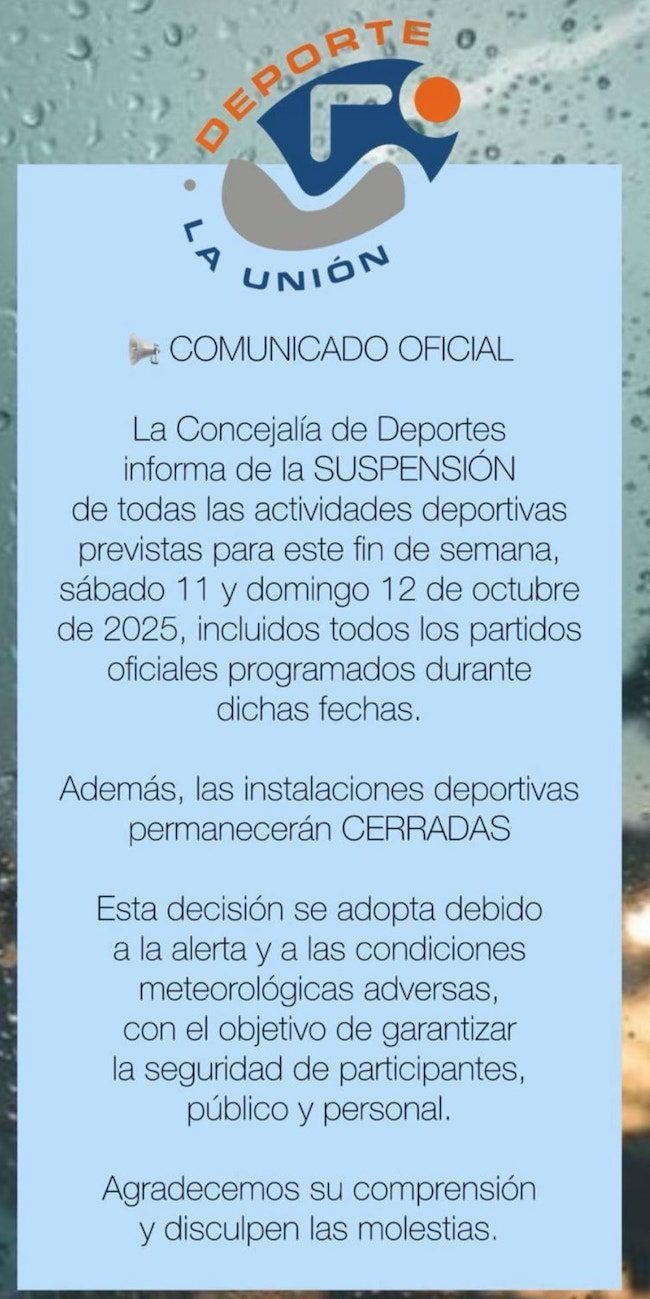 También recordar que la concejalía de Deportes de La Unión ha anunciado el cierre de las instalaciones deportivas durante todo el fin de semana.