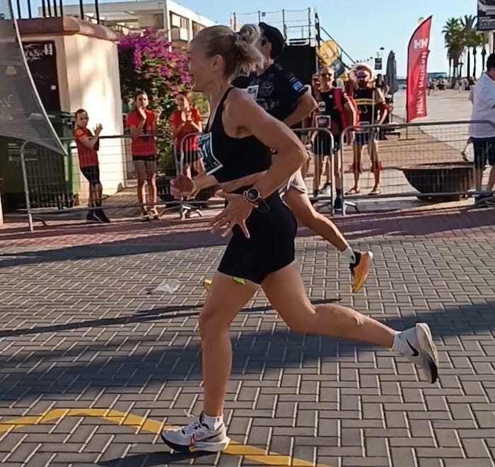La atleta de La Unión logra con enorme autoridad la victoria en la prueba absoluta femenina sobre 5 kilómetros de la carrera solidaria del Puerto de Cartagena.