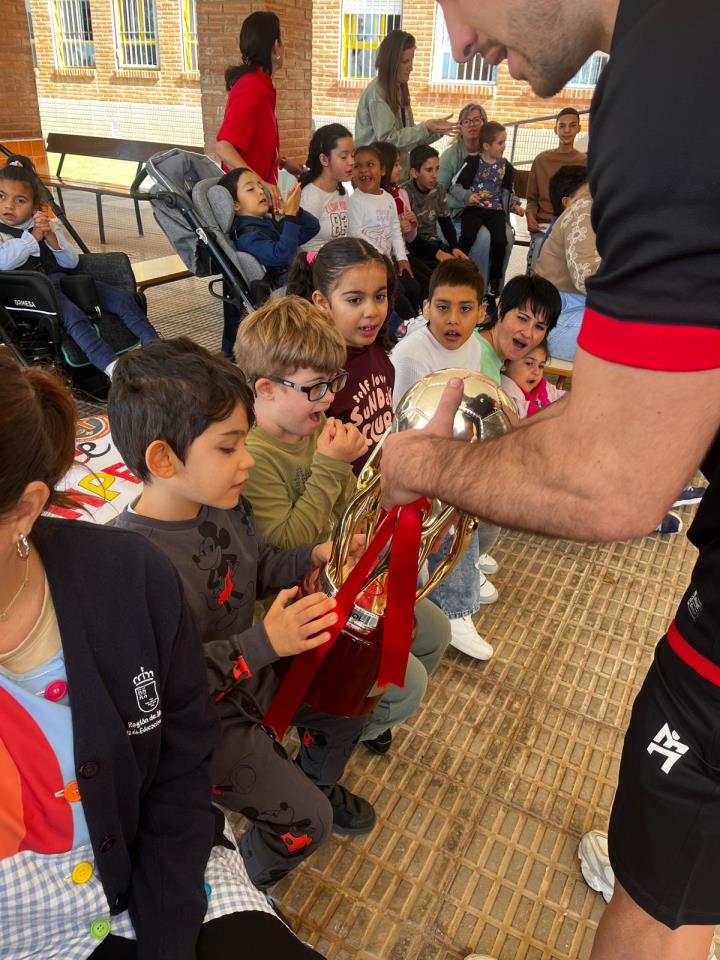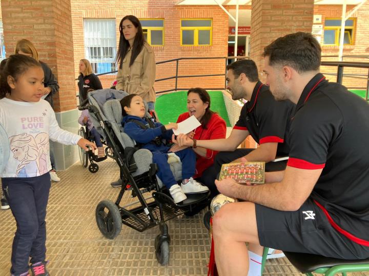El colegio de educación especial Enrique Viviente de La Unión recibió una visita muy especial y deportiva con los futbolistas Tomaz y Pablo Ramírez, del Jimbee FS Cartagena, uno de los grandes equipos del fútbol sala español.