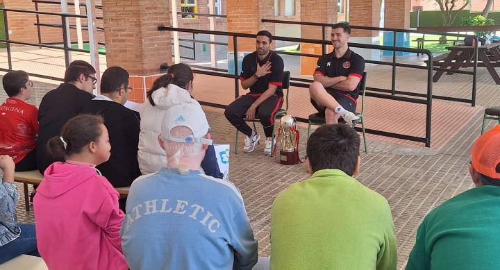 Tomaz y Pablo Ramírez, jugadores del Jimbee FS Cartagena, actual campeón de la liga española y que acaba de superar la primera fase de la Copa de Europa, visitaron el centro de educación especial de La Unión.