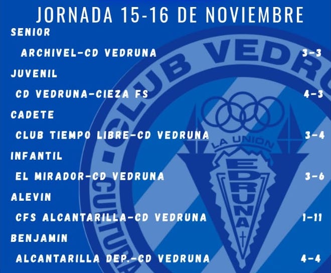 Estupendo fin de semana pasado para el CD Vedruna, pues ninguno de sus seis equipos que tenía partido de liga federada autonómica cayó derrotado. Vencieron las escuadras juvenil, cadete, infantil (foto superior) y alevín mientras que empataron los mayores y los más ‘peques’.