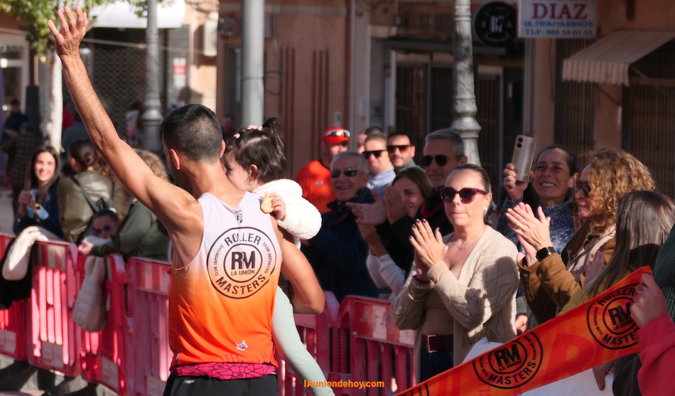 Expectación en la zona de meta, donde son muchos los que desean ver a 'Sisco' Díaz llegar en primera posición de la carrera extrema del 'XVI Roller Masters Trail', pues es histórico y muy difícil superar que un atleta logre 10 victorias en la misma prueba. Y así fue. Entre aplausos entró el corredor de El Garbanzal sobre la peatonal plaza de Joaquín Costa. Saluda en señal de agradecimiento y cuando se acerca a la pancarta de meta abre los brazos para recibir a su hija, Leo, y, como ya se ha convertido en una tradición, cruzar la meta, no cesando la ovación que merece un campeón.