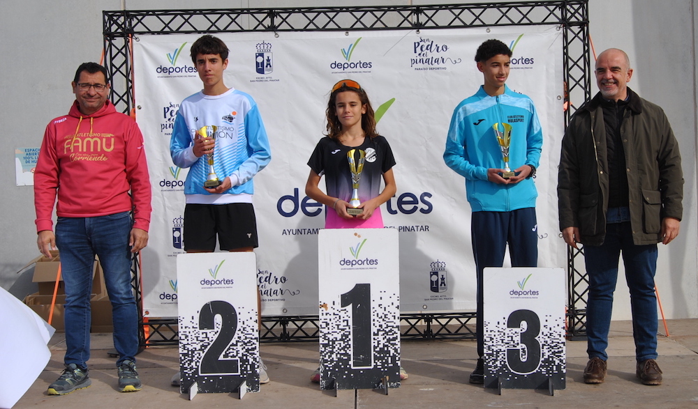 En sub-12 destacar que Valeria Selma Martínez fue cuarta con un tiempo de 6’22” sobre una distancia de kilómetro y medio, mientras que Adriana Higueras Martínez fue sexta (6’30”). En chicos, Santiago Ros Sánchez ocupó el puesto 13 (6’25”). En la clasificación de ‘Máster’, sobre la misma distancia, Luis Alfonso Gudino quedó en el puesto noveno (17’40”).