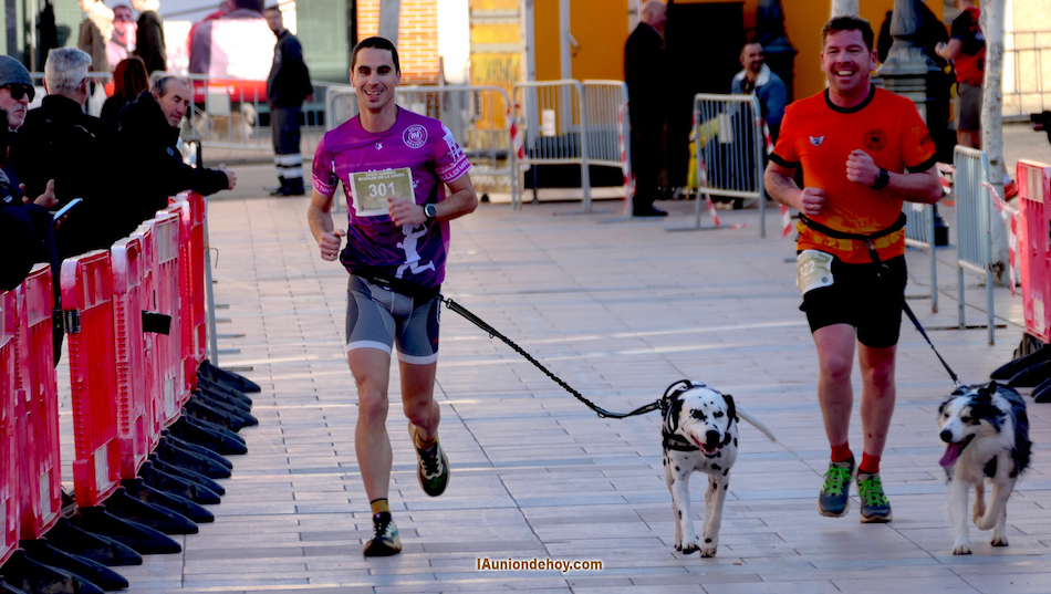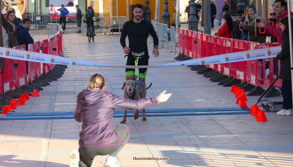 Dieciocho participantes tuvo la nueva edición del cross canino de la 'Carrera Alcalde de La Unión', modalidad en la que los perros van atados a sus propietarios, con lo que es una labor en equipo durante los seis kilómetros que dura la competición.