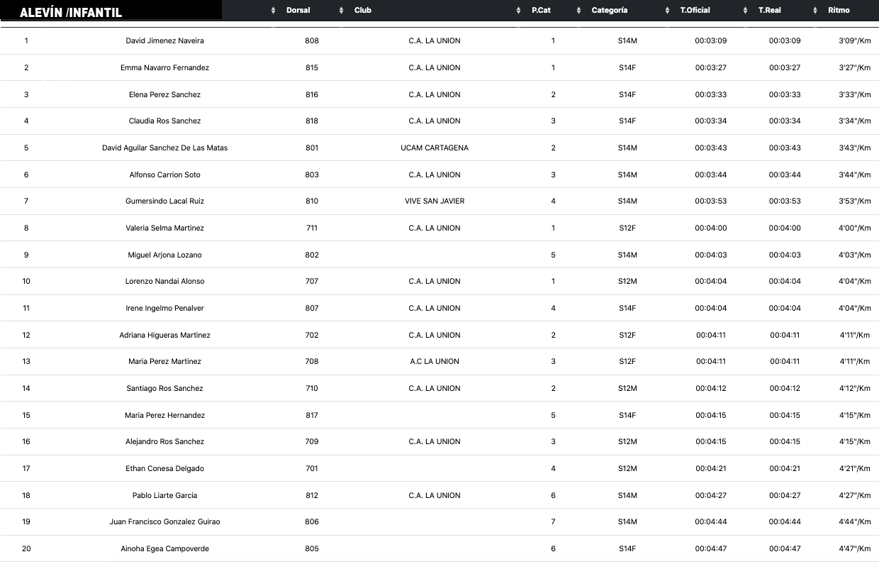 En cuantos a las categorías cadete, alevín e infantil, las clasificaciones reflejan el gran dominio unionese.