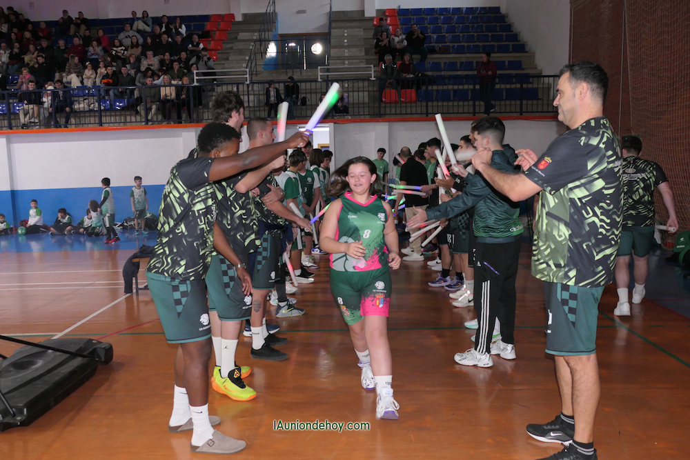 Dos momentos individuales y especiales ha tenido lugar en el pabellón unionense Ramón Solano. Uno ha sido cuando el jugador sénior Salar ha entregado una camiseta firmada por la plantilla del primer equipo a Jesús, ayudante del cuadro técnico y gran animador.