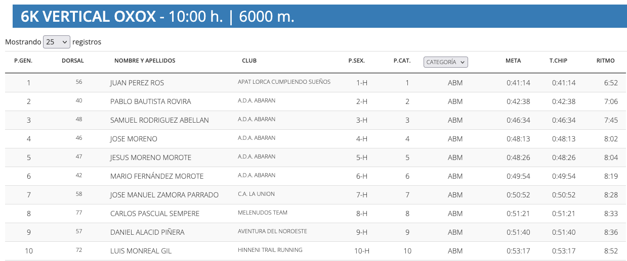 Por su parte, la 'Chinte Youth Promo', dirigida a atletas sub-16, la ganó Pedro José Giner, de Puerto Lumbreras (20'48"), con una ventaja de sólo 26 segundos sobre Javier Sánchez, del Club Atletismo La Unión.