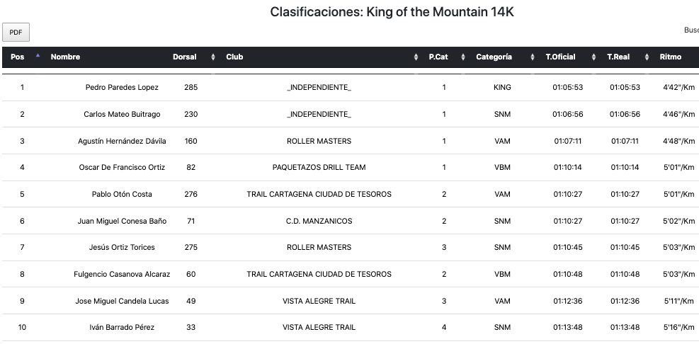 El unionense Jesús Ortiz Torices logró la séptima posición de la clasificación general en la carrera 'VI King of the mountain 2026' y se coloca en el cuarto puesto de la clasificación general de la liga de carreras de montaña del vecino municipio y en el segundo puesto en la categoría de mayores de 35 años. Su compañero de Roller Masters Agustín Hernández fue tercera en la prueba y se pone décimo tercero.