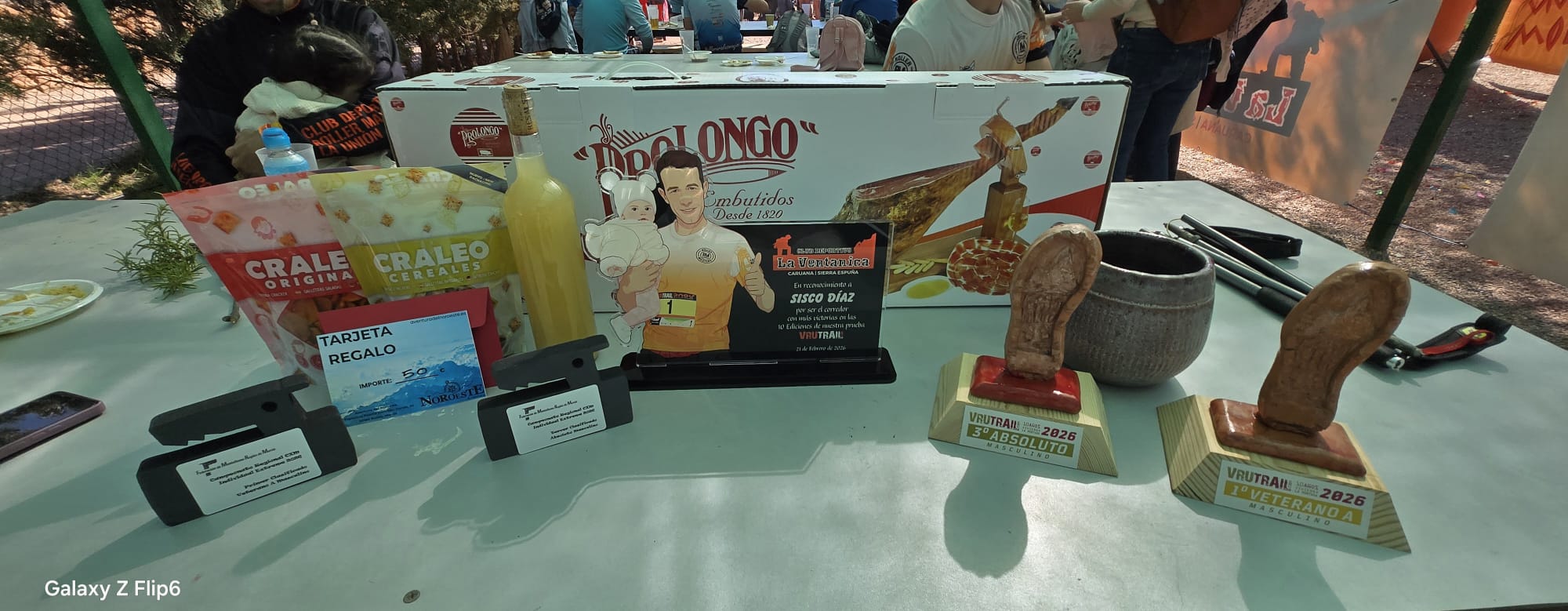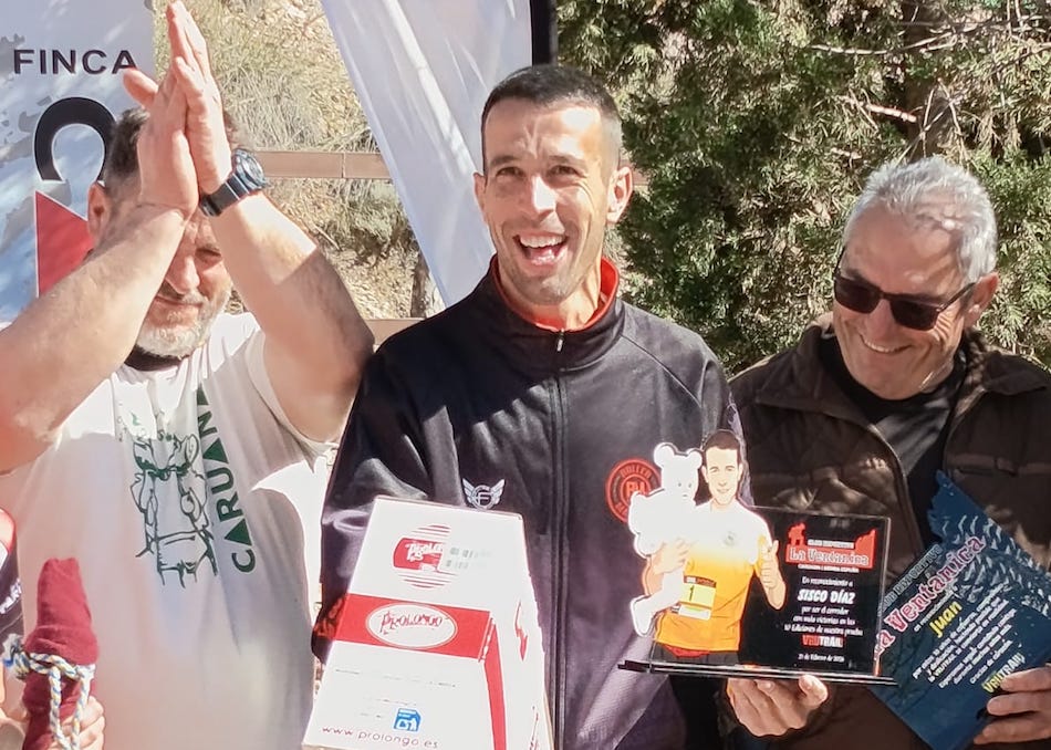 El corredor de El Garbanzal queda tercero en la clasificación general de la prueba ‘Trail 35K extreme’ celebrada por Sierra Espuña, además de un primer puesto en su categoría, pero la sorpresa le llegó cuando le entregaron un trofeo en el que aparece con la tradicional escena de cuando cruza la meta con su hija, que se le ha concedido por ser quien más victorias ha logrado en las diez ediciones de esta carrera.