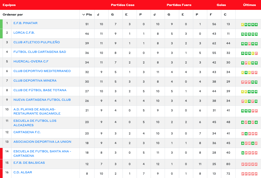 Vistoso partido disputado entre un aspirante al ascenso y otro que lucha por no perder la categoría. El Pulpileño tenía encarrilado el encuentro a la media hora con dos goles de ventaja, pero los unionenses no se rindieron y consiguieron colocarse con 2-1, 3-2 y 4-3, acariciando el empate, que al final no pudo ser en un partido que goles muy variados, incluidos un autogol minero y tres penaltis, uno a favor de los locales y dos para los visitantes. La AD La Unión sigue al borde de los puestos de descenso con el mal panorama de que este próximo fin de semana recibirá al invicto líder, EFB Pinatar.