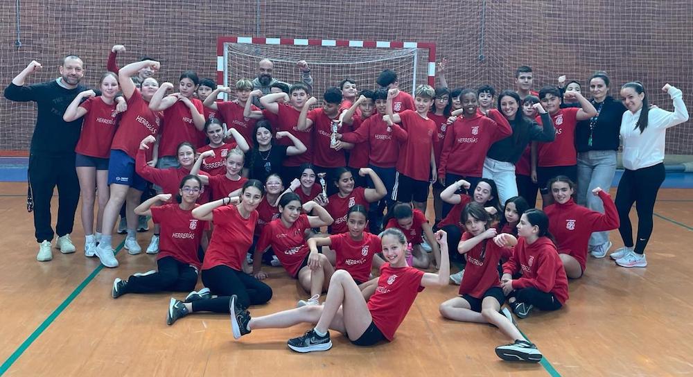 Ambos colegios lograron las primeras posiciones en las categorías masculina y femenina, respectivamente, del programa de Deporte Escolar que acerca esta disciplina a los escolares y que ha tenido una animada jornada en el pabellón Ramón Solano que contó con la participación de todos los colegios. Fechas atrás tuvo lugar el torneo benjamín, donde Herrerías y Vedruna fueron los vencedores. En las fotos superiores, lanzamiento de jabalina y carrera de relevos