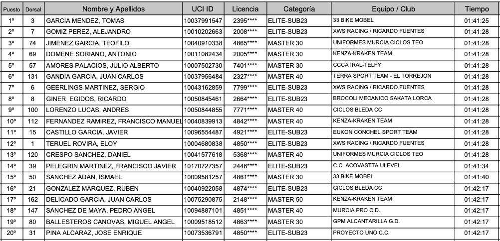 CLASIFICACIÓN GENERAL