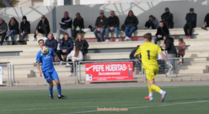 El equipo murciano corta una muy mala racha de 14 jornadas sin vencer y da un gran paso para evitar el descenso al derrotar al CD Ciudad de La Unión, equipo que acabó con 9 jugadores sobre el campo y que pierde una buena oportunidad de asegurar la permanencia. En la imagen superior, Pedro Mateo instantes antes de abrir el marcador