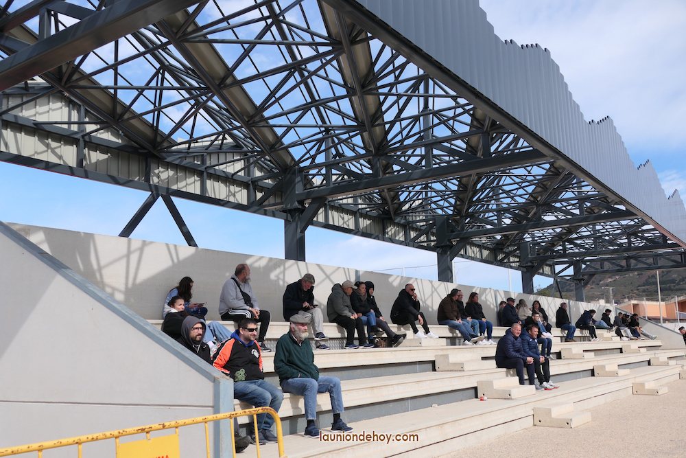 El campo de fútbol Miguel Expósito del polideportivo municipal Antonio Sánchez ya luce buena parte de la protección contra el agua y el sol que tendrá una de sus dos gradas.