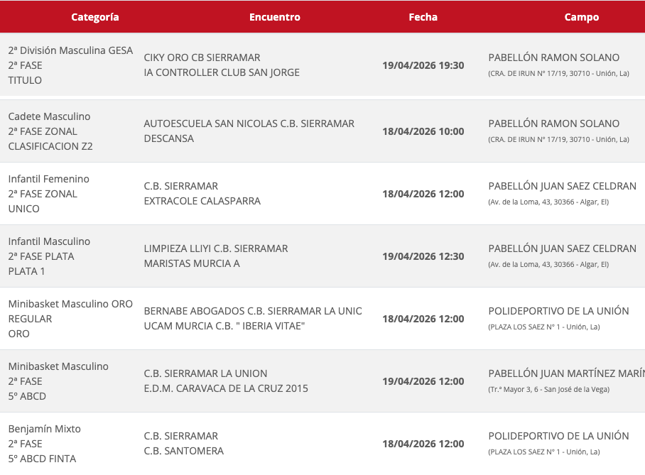 Competiciones federadas: CB Sierramar