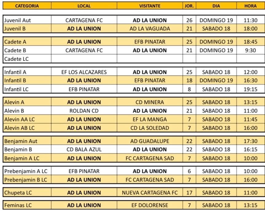 Todos los horarios de base de la AD La Unión:
