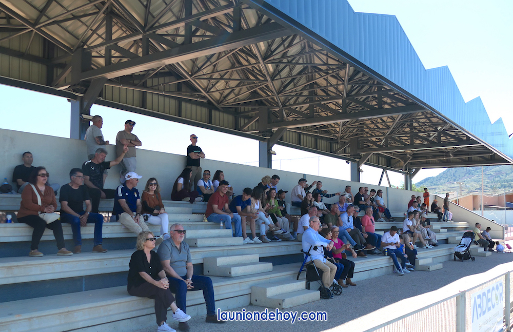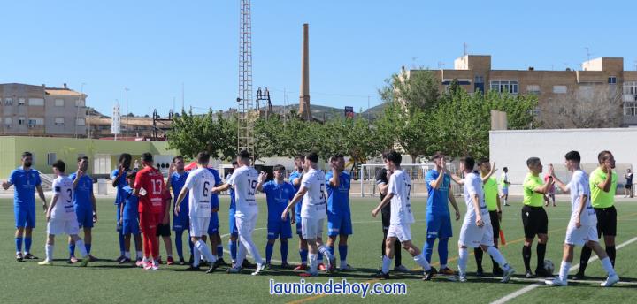 Partido de la jornada 26 de Primera Autonómica de fútbol disputado en el campo Miguel Expósito del polideportivo Antonio Sánchez de La Unión ante cerca de un centenar de espectadores, la mayoría ubicados en la nueva grada cubierta para protegerse del sol en una mañana primaveral.