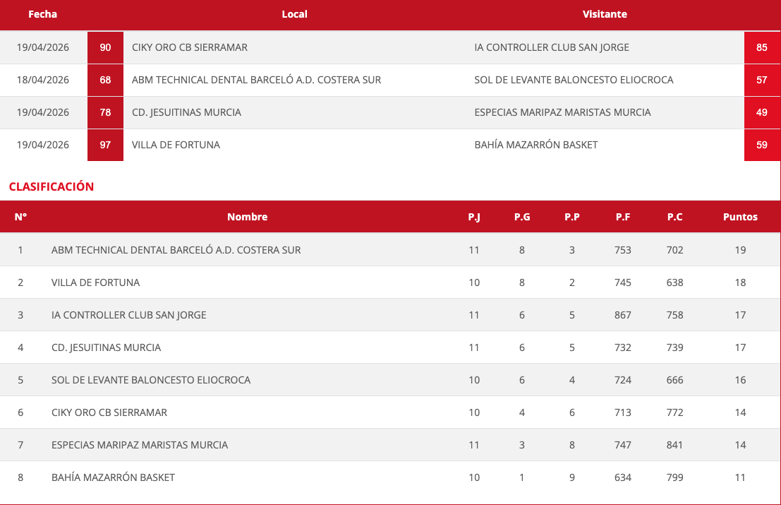El equipo que prepara Carlos Crespo logra una victoria que le permite mantener sus opciones de alcanzar la fase de ascenso de segunda a primera división regional, aunque sigue siendo complicado. Mancebo, Ruda y Pallarés se repartieron 72 de los 90 puntos en la victoria sobre el San Jorge de Molina de Segura en un muy entretenido encuentro.