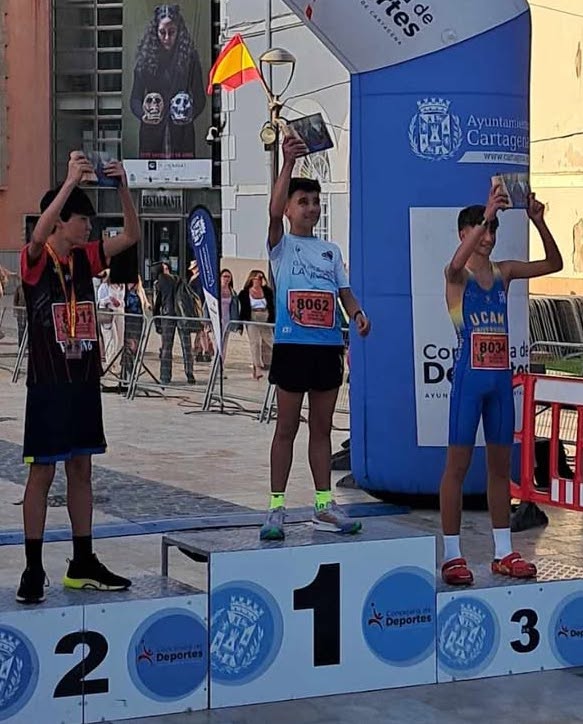 El joven unionense logró la victoria en la carrera sub-14, mientras que Tato fue décimo en su categoría en la prueba principal sobre 52,3 kilómetros del gran evento atlético celebrado en Cartagena, estando colocado en segundo lugar de la liga de carreras del vecino municipio.