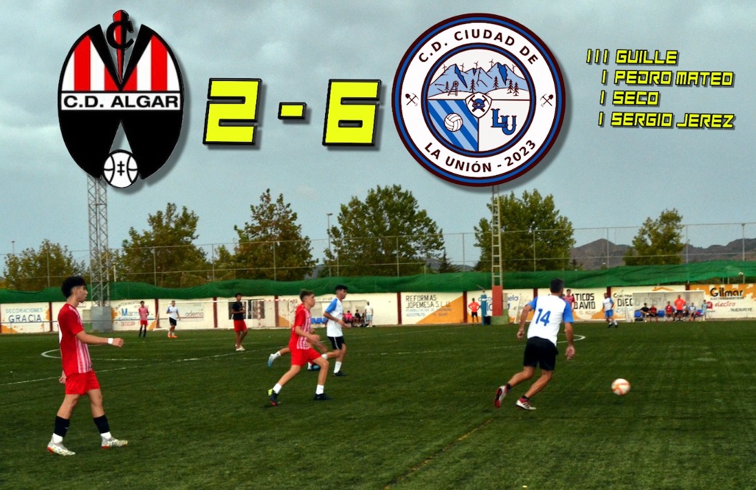 El equipo del Ciudad de La Unión resolvió con una goleada el partido de pretemporada disputado en el campo Sánchez Luengo de El Algar contra el equipo juvenil del club local y en el que comenzó perdiendo. Estuvo lloviendo durante todo el encuentro.