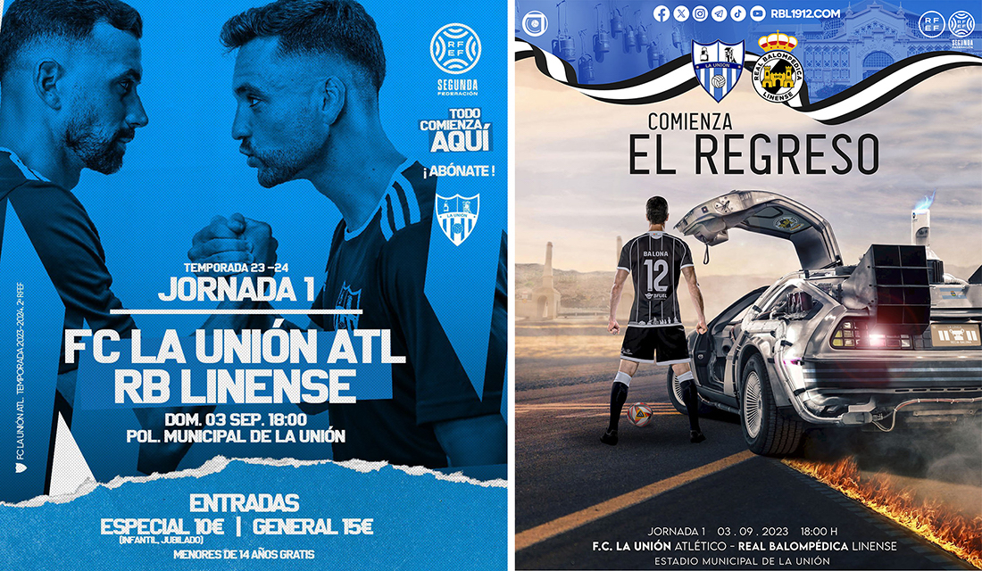 Tras la pretemporada y la disputa de partidos en los que sólo importaba la puesta a punto de los jugadores, hoy se alza el telón de la liga de Segunda RFEF, con lo que cobra máxima importancia sumar puntos en la clasificación. El debut de La Unión Atlético no será fácil, pues en su feudo recibe a uno de los máximos aspirantes al ascenso, Balompédica Linense, como se refleja en el cartel anunciador de este encuentro llevado a cabo por el club gaditano de La Línea de la Concepción. Al lado se observa el cartel unionense de la previa. Las entradas cuestan 10 y 15 euros para mayores de 14 años, siendo gratis el acceso para abonados.