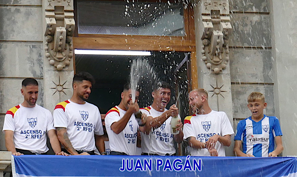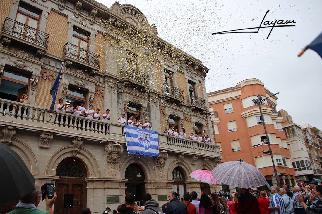 El ascenso del equipo de fútbol a la Segunda RFEF ha motivado una tarde de júbilo que ha 'pasado' de una ligera lluvia para ofrecer un derroche de alegría entre los integrantes del club y su afición, enriquecido con cánticos, música de campeones y lanzamiento de cava y de confetis. GALERÍA DE FOTOS (pinchar aquí)