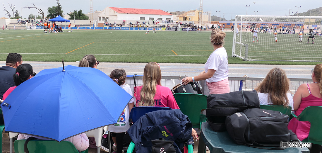 El macrotorneo ‘Sirenas Cup’ se estrenó este sábado con los 25 equipos de categoría benjamín distribuidos en 5 grupos, de los que 2 tuvieron como marco el polideportivo Antonio Sánchez de La Unión, donde se pudieron ver en acción a las promesas de equipos de cantera del fútbol profesional, además de los dos conjuntos de la AD La Unión, correspondiendo a uno de ellos la foto superior. Lo negativo fue el fuerte (y molesto) viento.