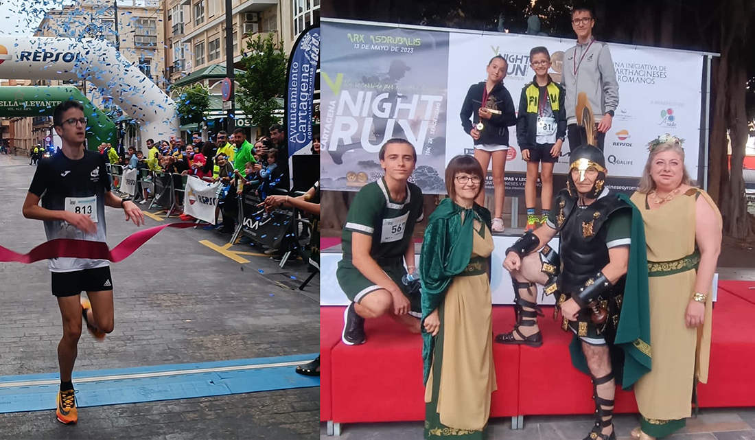 El atleta unionense logró la victoria en la prueba 'Jóvenes guerreros' disputada sobre dos kilómetros en la V 'Night Run-Arx Asdrubalis, que organiza la Federación de Tropas y Legiones de Carthagineses y Romanos en Cartagena, y que también contó con la participación de otros tres representantes del Club Atletismo La Unión, entre los que Ainhoa Salas ganó en alevín femenino.