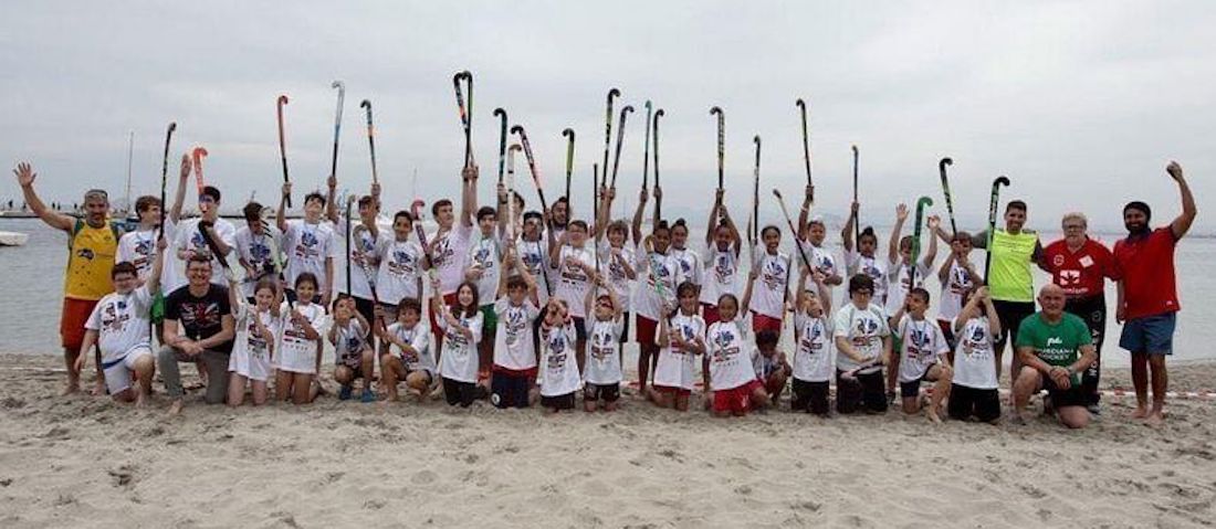 La asociación deportiva de hockey de La Unión ha sido el premiado por la federación autonómica de este deporte en la gala del deporte regional de la Unión de Federaciones Deportivas de la Región de Murcia. En la foto, jugadores y técnicos durante su participación este pasado fin de semana en el 'Sport4Cáncer-Mar Menor Games' que se ha celebrado en la playa de Los Alcázares, junto a equipos de Santomera, Murcia y el anfitrión.