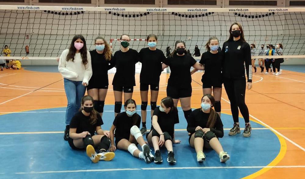 Los dos equipos alevines de voleibol en el partido amistoso que jugaron en el inicio del nuevo año 2022