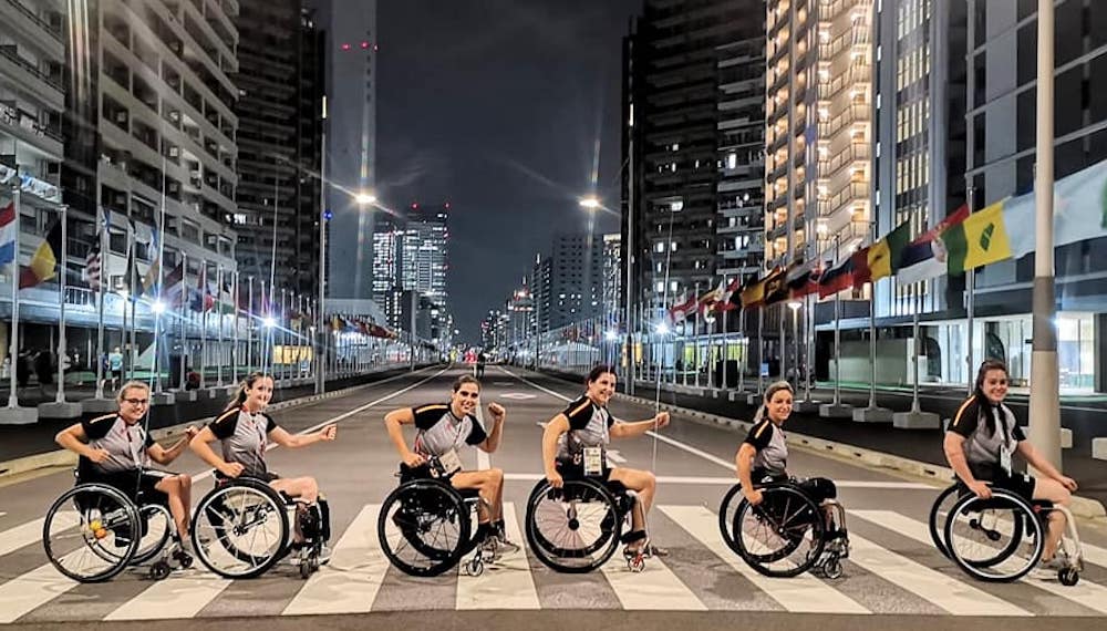 El equipo español de baloncesto en silla de ruedas femenino pierde en cuartos de final de los Juegos Paralímpicos con Gran Bretaña y se lleva un diploma olímpico. La jugadora unionense anotó 6 puntos en ese partido. En la simpática imagen adjunta se la observa en segundo lugar por la derecha del lector pasando por un paso de peatones de la ciudad nipona con otras compañeras de selección.