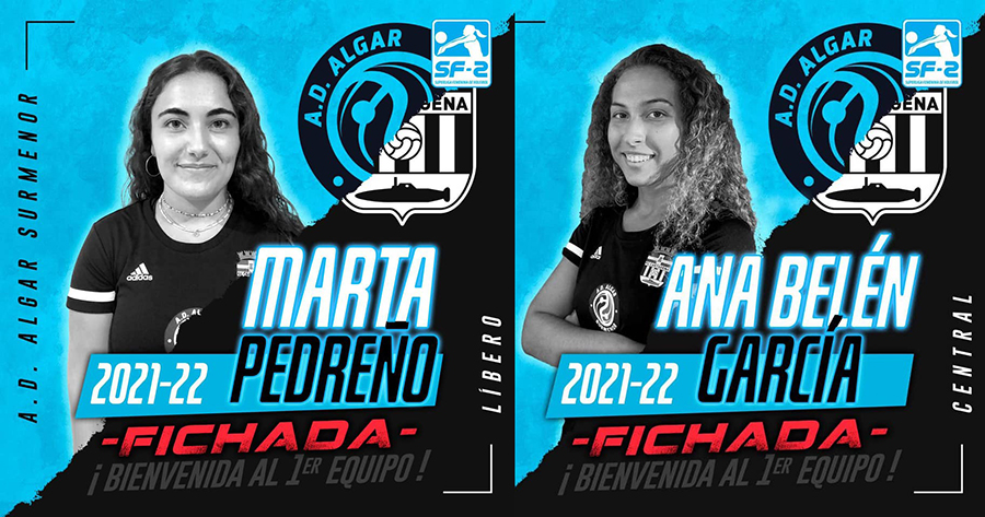 La AD Algar Surmenor-FC Cartagena ha incorporado a Ana Belén García y a Marta Pedreño a su primera plantilla, la cual competirá esta temporada en la Superliga-2, categoría de plata del voleibol español femenino.