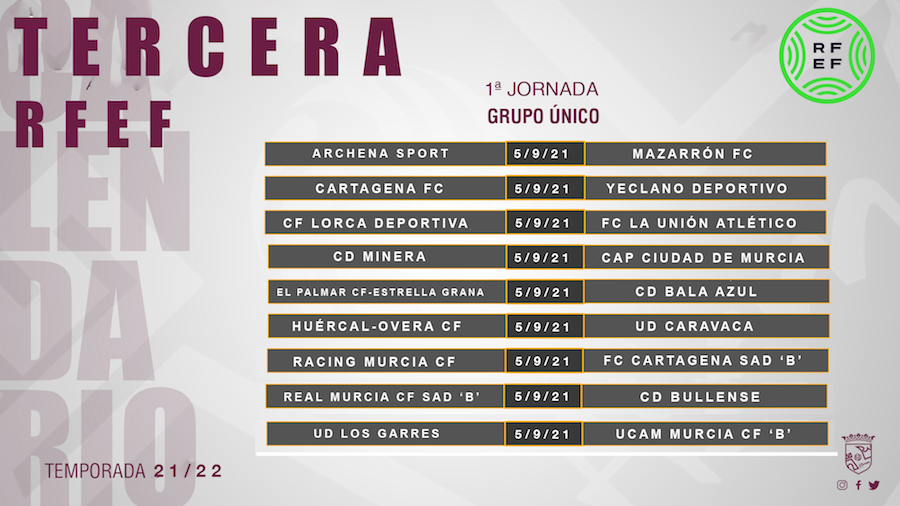 La primera jornada del Grupo XIII de Tercera División se disputará el fin de semana del 5 de septiembre, para en la siguiente jornada recibir en el polideportivo ‘Antoniop Sánchez’ a la UD Los Garres.