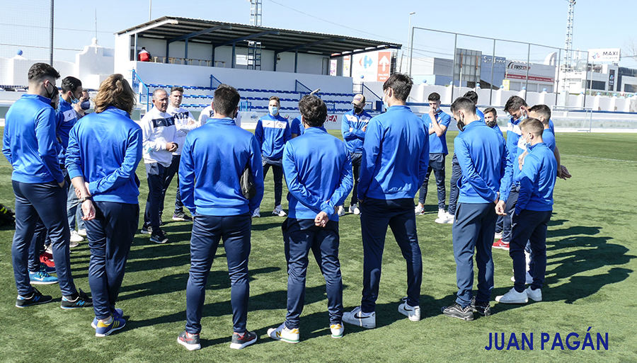 Palomeque con sus jugadores sobre el terreno de juego de El Pitín hace unas semanas ante el partido de liga