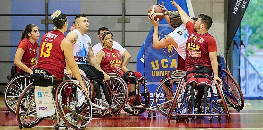 La jugadora unionense (en la foto con el dorsal 6) vive un año dorado, pues además de su presencia en los Juegos Paralímpicos de Tokio de este verano, saborea el ascenso a la división de honor de la liga nacional de baloncesto en silla de ruedas tras renunciar Abeconsa Ferrol a la plaza, la cual corresponde ahora al equipo murciano, que fue subcampeón en la fase de ascenso.