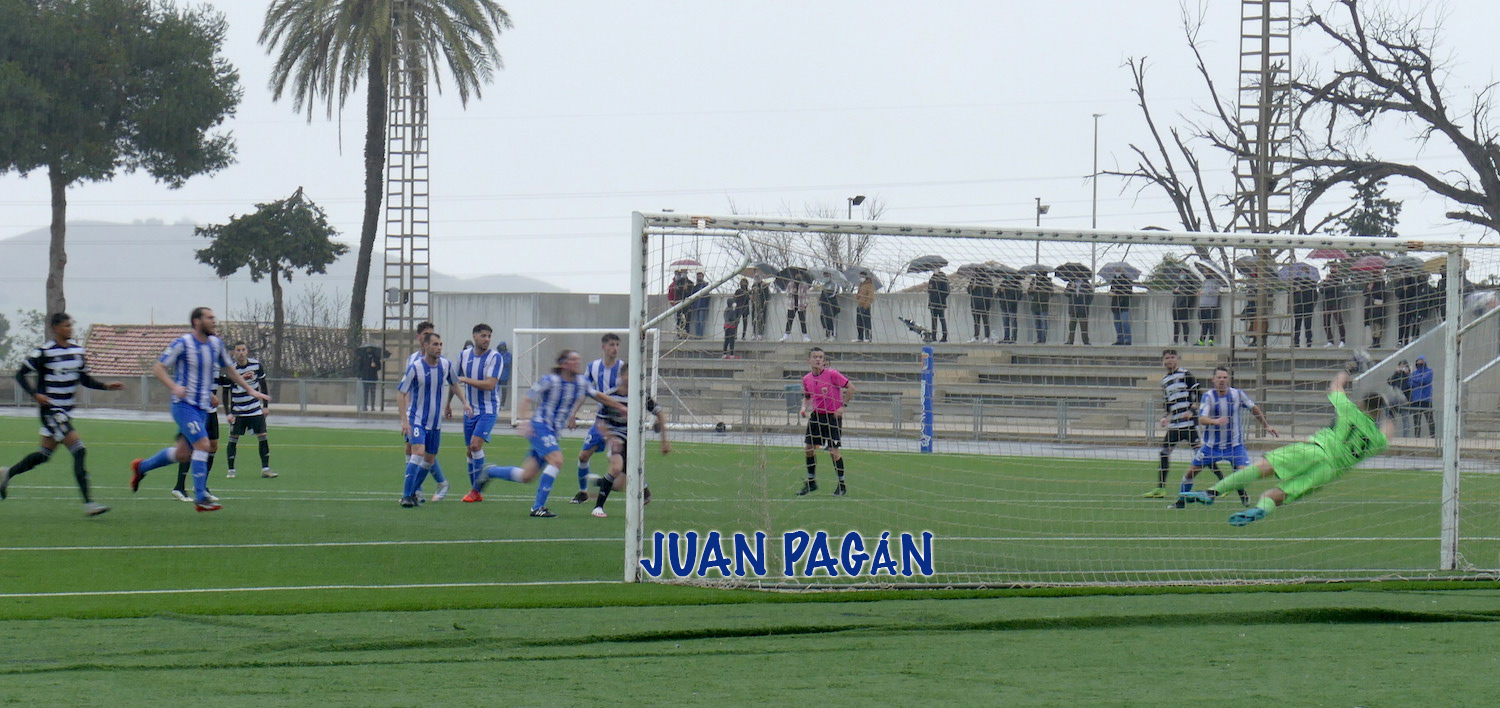 En un partido disputado bajo la lluvia, el equipo blanquiazul derrota al FC Cartagena B, segundo clasificado y que hasta hoy no había conocido la derrota en esta liga, con dos goles de Sergio Jiménez y uno de Cristian, con lo que refuerza sus opciones de acabar entre los tres primeros del grupo cuando quedan tres jornadas, en la que los de Palomeque tendrán que descansar en una.