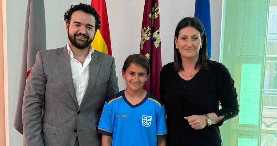 El alcalde, Joaquín Zapata, y la concejal de Deportes, Aurora Rodenas, han recibido a Daniela Perales Roca, jugadora unionense que milita en el FC Cartagena y que ha sido convocada para el Campeonato de España de selecciones autonómicas Sub-12 de fútbol femenino que se celebrará en Madrid.