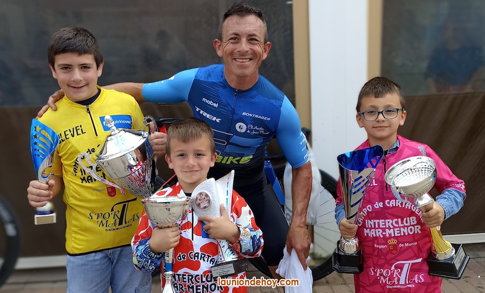 Ismael Sánchez Adán ha ganado, por segunda vez, el considerado campeonato regional de ciclismo aficionado por etapas y en la jornada final recibió en el podio 6 trofeos y 2 jamones, con los que posa junto a sus tres hijos. Dentro de unas semanas buscará repetir título de mountain bike.