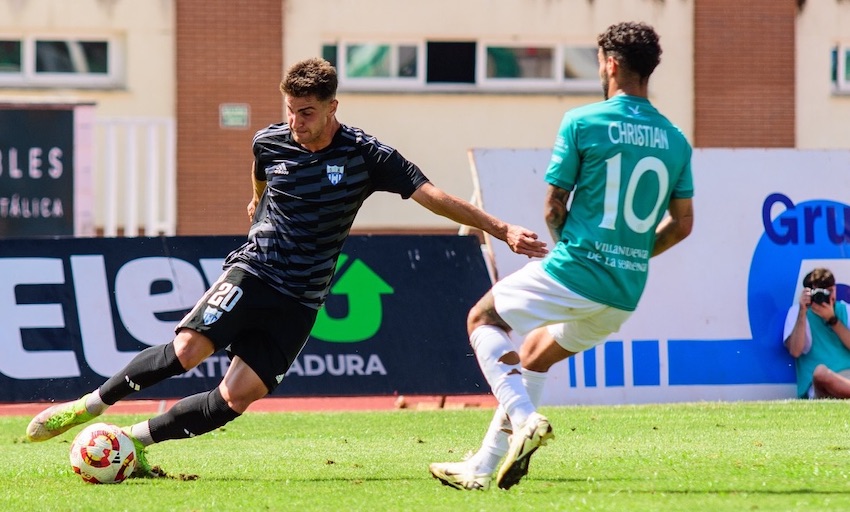 El Villanovense, equipo que visita este domingo a La Unión Atlético, aún no sabe lo que es vencer en sus viajes y está en puesto de descenso, pero antes de descanso navideño mostró mejoría y está en plena fase de reajustar su plantilla. Imagen del partido entre ambos que abrió la liga y que ganaron los mineros por 0-3, donde se observa a Espínola, quien será baja para José Miguel Campos en esta primera jornada postnavideña.