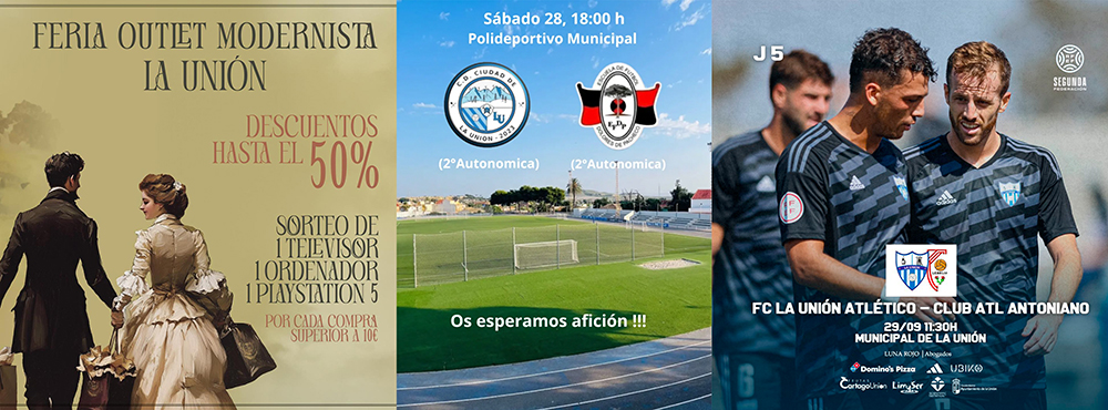 Los primeros equipos de baloncesto del Sierramar entran en competición. En fútbol sala son tres los conjuntos de Vedruna que tienen compromisos de liga. En fútbol, amistoso del Ciudad de La Unión e importante duelo frente al Antoniano el domingo en casa de La Unión Atlético. Fuera del deporte hay cena gala de los Caballeros de Santa Bárbara, baile en el hogar de mayores y dos jornadas con la novedosa 'Feria Outlet modernista'.