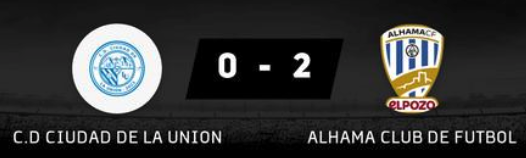 El CD Ciudad de La Unión recibe en su casa dos goles en los primeros 13 minutos de su partido contra el EF Alhama, uno de los equipos de la zona baja de la clasificación, y no consigue reaccionar, siendo uno de los escasos partidos de esta temporada en los que no marca.