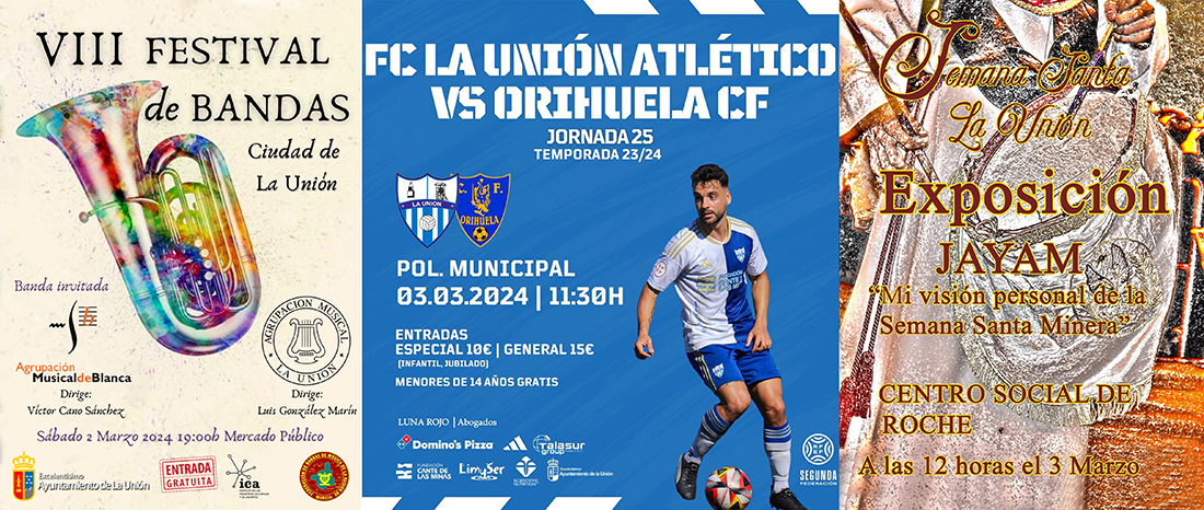 Tres días plagados de actividades, pues a los partidos de fútbol, fútbol sala, baloncesto y voleibol de nuestros equipos se sumen tres actos de cuaresma procesionista, la convivencia de la Orden de los Caballeros de Santa Bárbara, una plantación en Portmán, la cena solidaria del 25 aniversario de la Fundación Sierramar y el concierto de bandas de música.
