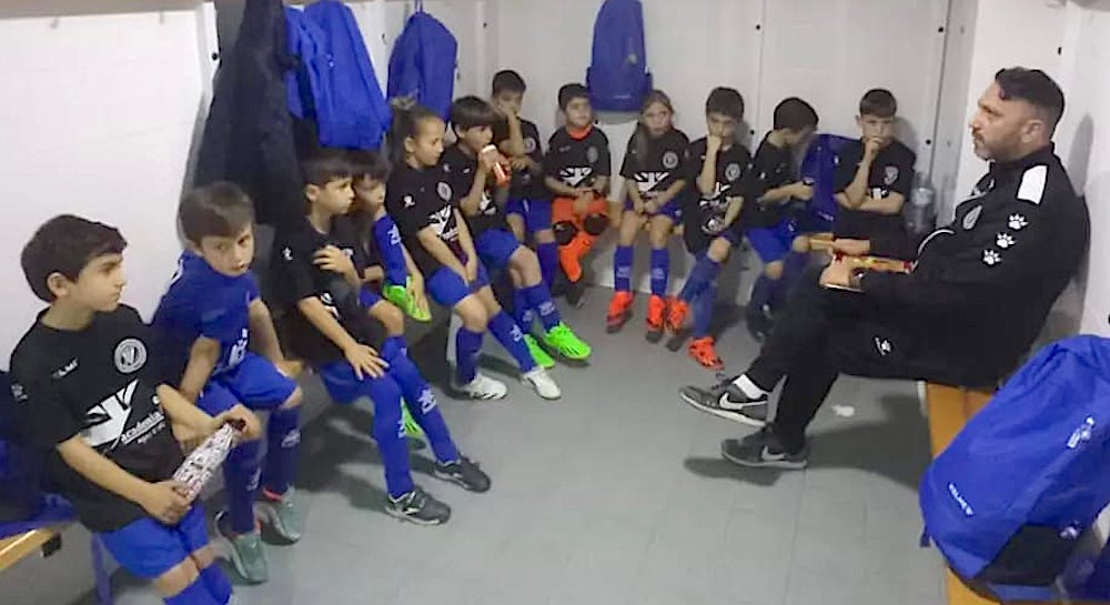 El equipo cadete del CD Vedruna sufrió una clara derrota ante ElPozo Murcia, un equipo que lleva todos los partidos con victoria esta temporada en División de Honor y que tiene tres internacionales en sus filas, pero el marcador fue engañoso, llegando tres goles en los instantes finales. También fueron excesivos los guarismos para el benjamín, que sufrió la mayor pegada del Librilla, pero que sigue bien en la clasificación. En la foto, charla previa al encuentro del entrenador a los jugadores en el vestuario.