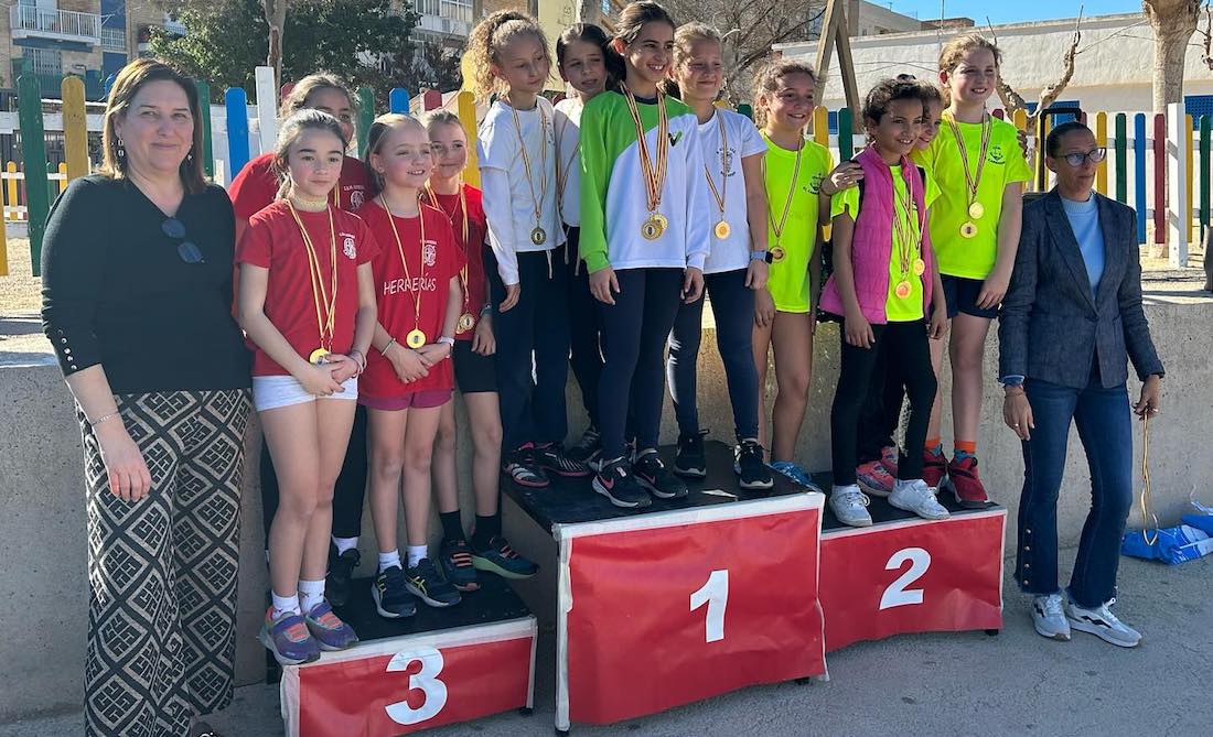 El Ayuntamiento de La Unión ofrece imágenes de la entrega de medallas de la jornada de atletismo escolar de categoría benjamín, que han llevado a cabo lasediles Dami García y Loly Mendoza en el polideportivo Antonio Sánchez.