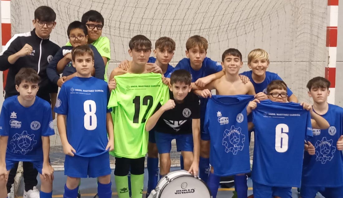 El infantil del CD Vedruna (foto adjunta tras la victoria en Alhama) comienza el año con triunfo que le permite seguir con el mano a mano con CFS Capuchinos en el primer puesto dela clasificación. Por su parte, el cadete perdió en los últimos instantes ante el potente PR7 Murcia. Ambos partidos se jugaron en Roche.